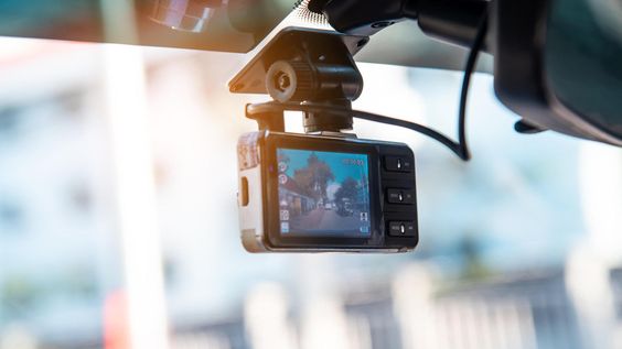 Car video camera attached to the windshield to record driving and prevent danger from driving Car video camera attached to the windshield to record driving and prevent danger from driving